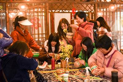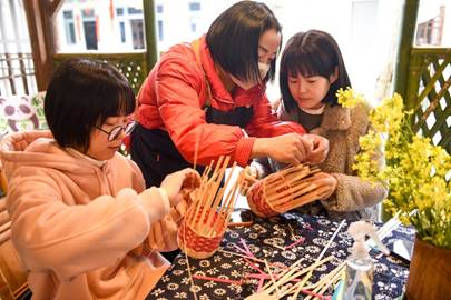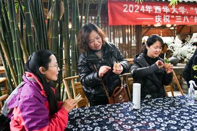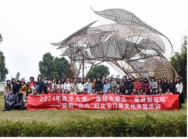 3月6日,来自全校的60余名女教师代表欢聚崇州道明竹艺村,深入了解当地竹艺文化和村民生活,参与体验竹编DIY等活动,参观乡村旅游示范点和竹艺工艺坊,感受崇州乡村振兴的显著成果和乡村文旅融合建设的特色魅力。通过非遗传承人的讲解,大家了解了竹编文化的发展和竹编艺术技法分类,被非遗传承人秉承工匠精神、坚守初心的精神深深打动。而后,大家亲自体验了竹编过程,每个人沉浸在美好的静谧时光中,用心感知人与竹之间的灵动,手法逐渐从生涩到熟稔,竹篾的纵横经纬越发严谨与细致,最终完成了花篮、铃铛等精美的竹编品。下午,大家前往竹艺公园登山徒步,欣赏竹林间黄灿灿的油菜花,感受大自然的美好,轻松自在地交流分享工作和生活体会,欢声笑语洒满山间。