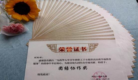 游戏结束后,为肯定老师们在践行“为伟德国际1946青年教职工子女提供高品质学前教育服务”的使命中的卓越贡献,由园长兰利颁发荣誉证书,激励教师们在今后的工作中不忘初心,牢记使命,奋勇向前。