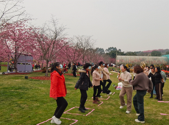 幼儿园精心准备了“蒙眼原地踏步”、“蔬菜跳跳跳”等小游戏。活动现场,所有人都积极参与其中,音乐声、欢笑声、掌声此起彼伏。教师们尽情释放工作和生活中的压力,感受活动带来的欢乐,活动氛围既温馨又热闹,吸引了许多游人驻足观望。