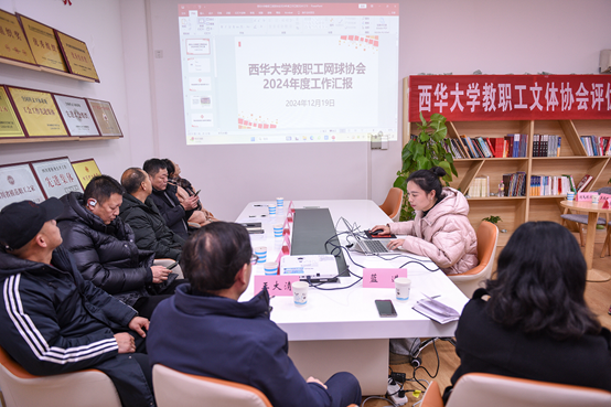 2024年12月19日下午3:00,校工会在工会活动室召开了2024年度教职工文体协会考评暨工作交流会。校工会常务副主席王大清、副主席蓝进、校工会文体工作委员会全体委员、各教职工协会负责人(代表)近20人参加了会议,会议由副主席蓝进主持。