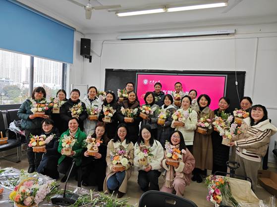 此次主题活动主要内容是插花体验。学院女教职工们精神饱满,参与热情高涨,活动现场氛围温馨愉悦。在精心的构思与审美下,展示出一件件独一无二的插花艺术作品。