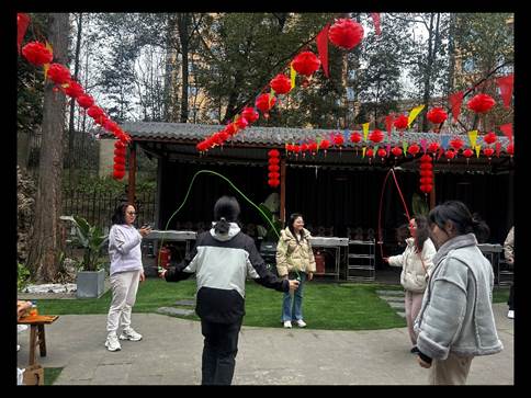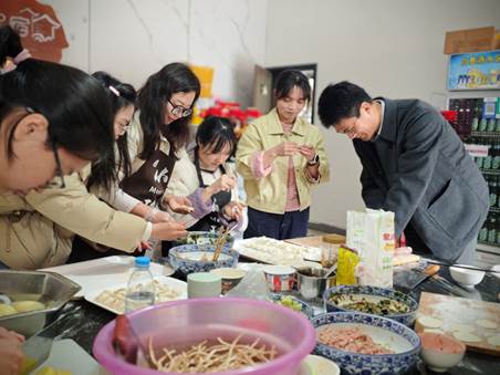 上午十时,民宿庭院化作“美食工坊”。平日里执掌三尺讲台的教师们系上围裙,化身厨艺达人,在灶台前展开一场舌尖上的较量。揉面擀皮的老师巧手翻飞,将饱满的馅料裹入薄皮,捏出月牙般的玲珑饺子;铁锅中翻腾的琥珀色红烧肉滋滋作响,糖香裹挟着酱香弥漫庭院;川味狼牙土豆在娴熟的刀工下绽出锯齿花纹,辣椒面与孜然粉碰撞出地道的烟火气;烧烤区炭火正旺,鸡翅、肉串在老师们手中翻转起舞,油花滴落激起的星火伴着欢声笑语升腾。白花花的水饺与红亮亮的红烧肉相映成趣,椒香扑鼻的狼牙土豆点缀其间,一场跨越南北的风味交响在春日暖阳中悄然奏响。