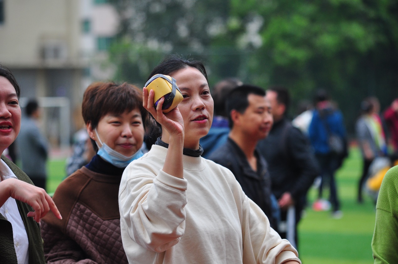 下午的比赛项目有“趣味投篮”“陆地龙舟赛跑”“鼓动人心”“桌上保龄球”,尽管气温逐渐升高,老师们的热情却没有一丝减少。“陆地龙舟赛跑”掀起了下午比赛的高潮,老师们依次跨坐在充气龙舟上,双脚踩在地面上,双手提起龙舟,然后用力蹬地推进充气龙舟前行。随着龙舟一摇一摆地前进,赛场上的欢呼声此起彼伏,老师们也随着场上的欢声笑语抵达了终点。