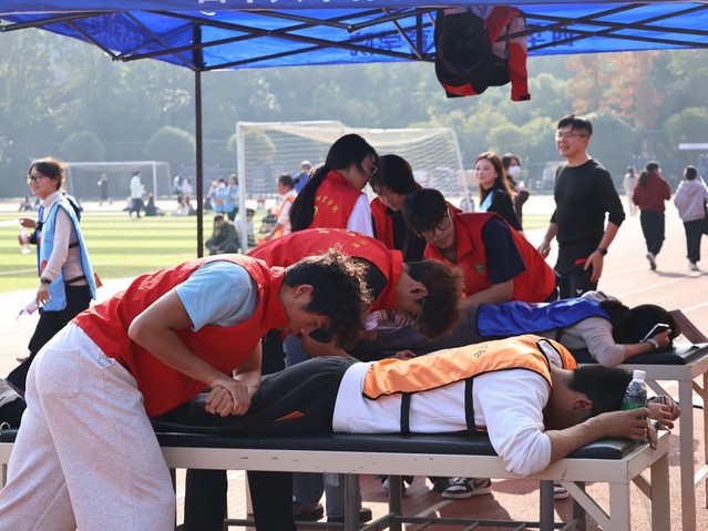 体育学院学生为参加活动老师们按摩放松