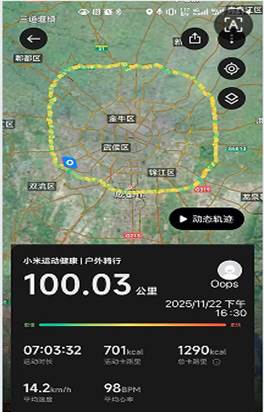 “这个安排太人性化了!”参加自由跑的李玉和老师感慨道,“我那天上午有课,中午才抽空在学校操场跑了一会。既能参与集体活动,又不耽误工作,感觉运动真正融入了生活,而不是一个额外的负担。”同样,选择骑行的闵若男老师也分享了她的体验:“我沿着绕城绿道骑行了一整圈,耗时七个多小时,既完成了比赛,也欣赏了秋日美景,用APP记录下里程截图的那一刻,成就感满满!