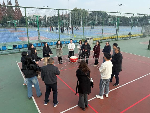 “鼓动人心”团队协作项目需大家工共同拉绳控制一面鼓,通过协作使网球在鼓面上连续弹起。活动极具挑战性与趣味性,考验团队的协调性与节奏感。教职工们在练习中不断调整策略、磨合配合,最终创下多次连续击球记录,将现场氛围推向高潮,充分体现了集体智慧与协作精神。