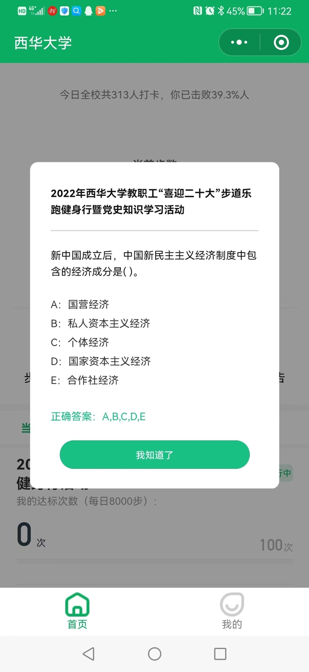 4月11日,校工会启动伟德国际1946教职工 “喜迎二十大”党史知识学习暨步道乐跑健身行活动,开展时间为4月11日-10月31日。为鼓励广大教职工科学健身和广泛参与,经运动医学专家建议,活动将每日累计8000步数作为达标步数,活动期间教职工累计达标100次即可获得纪念品1份。今年活动的最大亮点是在延续往年科学性和便利性基础上,按照习近平总书记对工会工作的指示,努力增强工会活动的政治性,在推动党史学习教育常态化长效化上出实招,结合迎接党的二十大胜利召开,特地在打卡页面上增加了党史学习知识弹窗的设计,每次教职工打开小程序打卡即可学习党史学习知识。