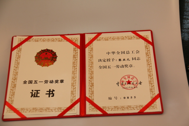伟德官网黎亚元同志荣获中华全国总工会“全国五一劳动奖章”(200605)