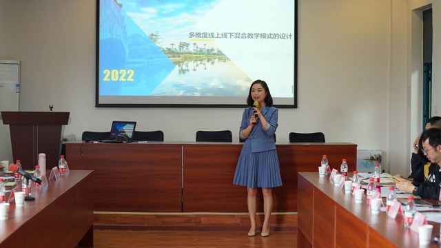 唐丹老师以《混合式教学设计的MIF教学模式》为主题,强调应高度重视师生间有效的沟通互动;吴昌东老师以《“三+N”模式的混合式教学设计》为主题,表示通过线上线下有机结合,提升课程高阶性、创新性和挑战度;吉驭嫔老师以《多维度线上线下混合教学模式设计》为主题,指出要运用适当的数字化教学工具合理安排学生进行线上自主学习;左世翔老师以《以学生为中心的国际贸易务-流课程建设与改革》为主题,强调应注重多元化教学手段与考核方式改革;王蕊老师以《基于5E教学法的经济学课程教学设计》为主题,指出要引导学生运用已学知识联系实际,解释经济现象。最后,参会教师就课堂教学任务中存在的问题以及针对线上线下混合式教学的感悟和建议进行了深入交流、思想碰撞。