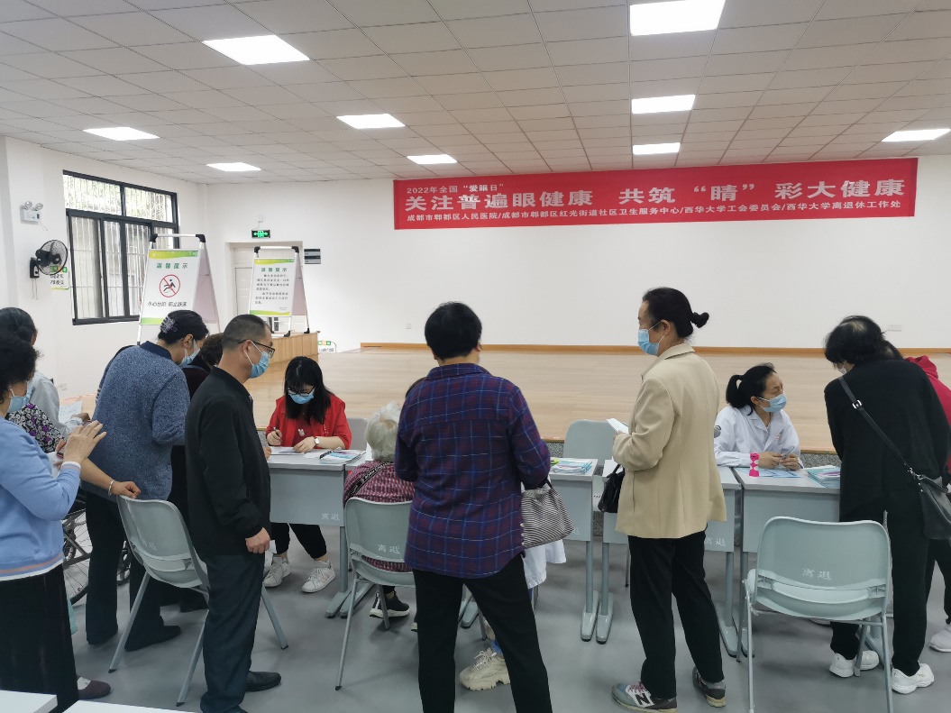 在6月6日第27个全国“爱眼日”到来之际,为推动“为民办实事”长态化、长效化,5月27日上午,校工会联合离退休工作处携手郫都区人民医院眼科、红光街道社区卫生服务中心,在夕阳红活动中心开展了一场主题为“关注普遍眼健康,共筑‘睛’彩大健康”的义诊活动,旨在为教职工和离退休同志进行免费白内障筛查、普及眼病预防知识,增强全民爱眼护眼意识。