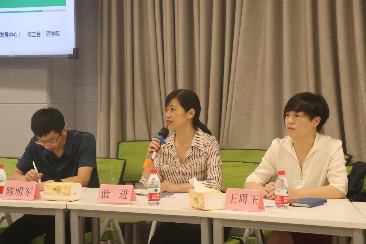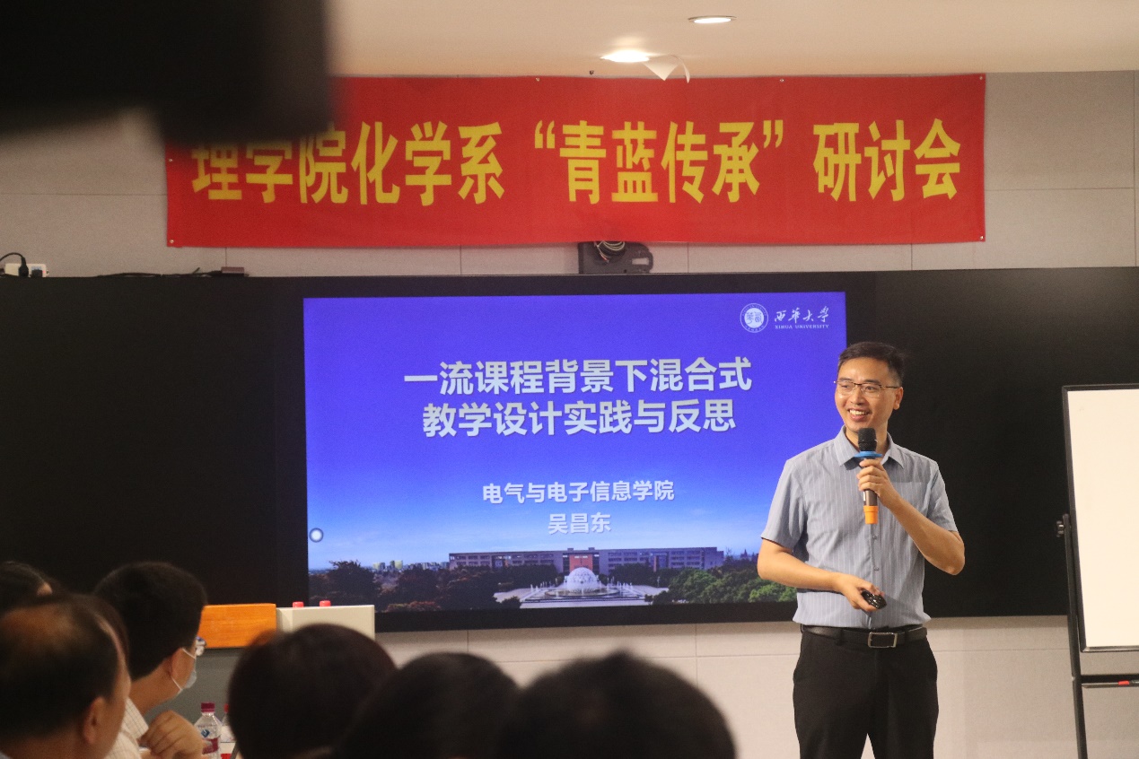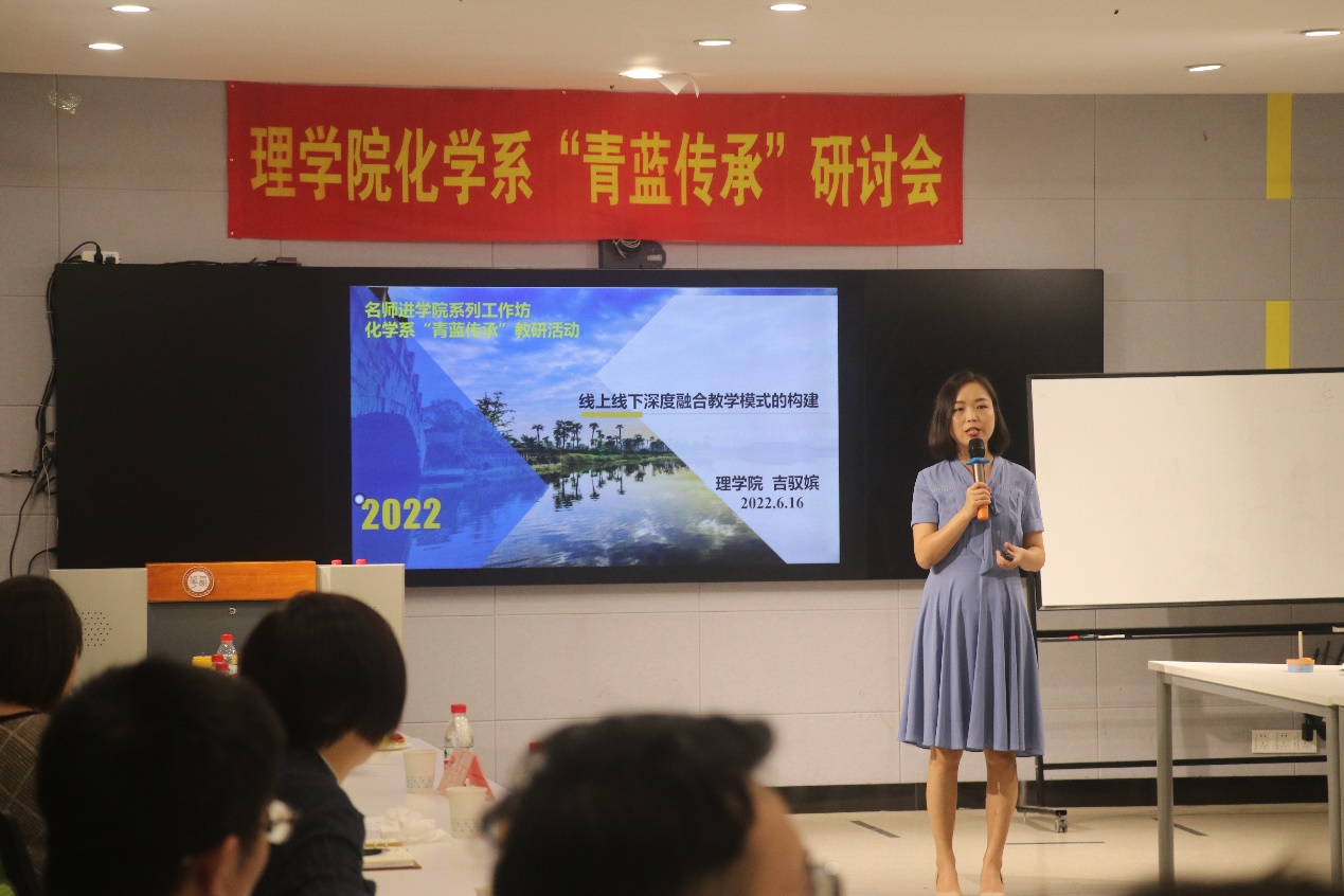 为进一步推进教育信息化实践应用,提升教师信息化教学素养,6月16日上午伟德国际1946教务处(教师教学发展中心)、校工会,联合理学院在3教105开展以“混合式教学能力提升”为主题的名师进校园系列工作坊暨理学院化学学科“青蓝传承”系列教研活动,特邀请电气与电子信息学院教授吴昌东、法学与社会学学院副教授唐丹与我院副教授吉驭嫔作分享。本次活动由我院化学系、化学实验中心承办,院化学系主任张燕主持,教务处副处长刘雪梅、副处长陈明军、校工会副主席蓝进、院党委书记裴峥、院长王周玉、副院长李会东,以及化学系和化学实验中心20余名教师参加。
