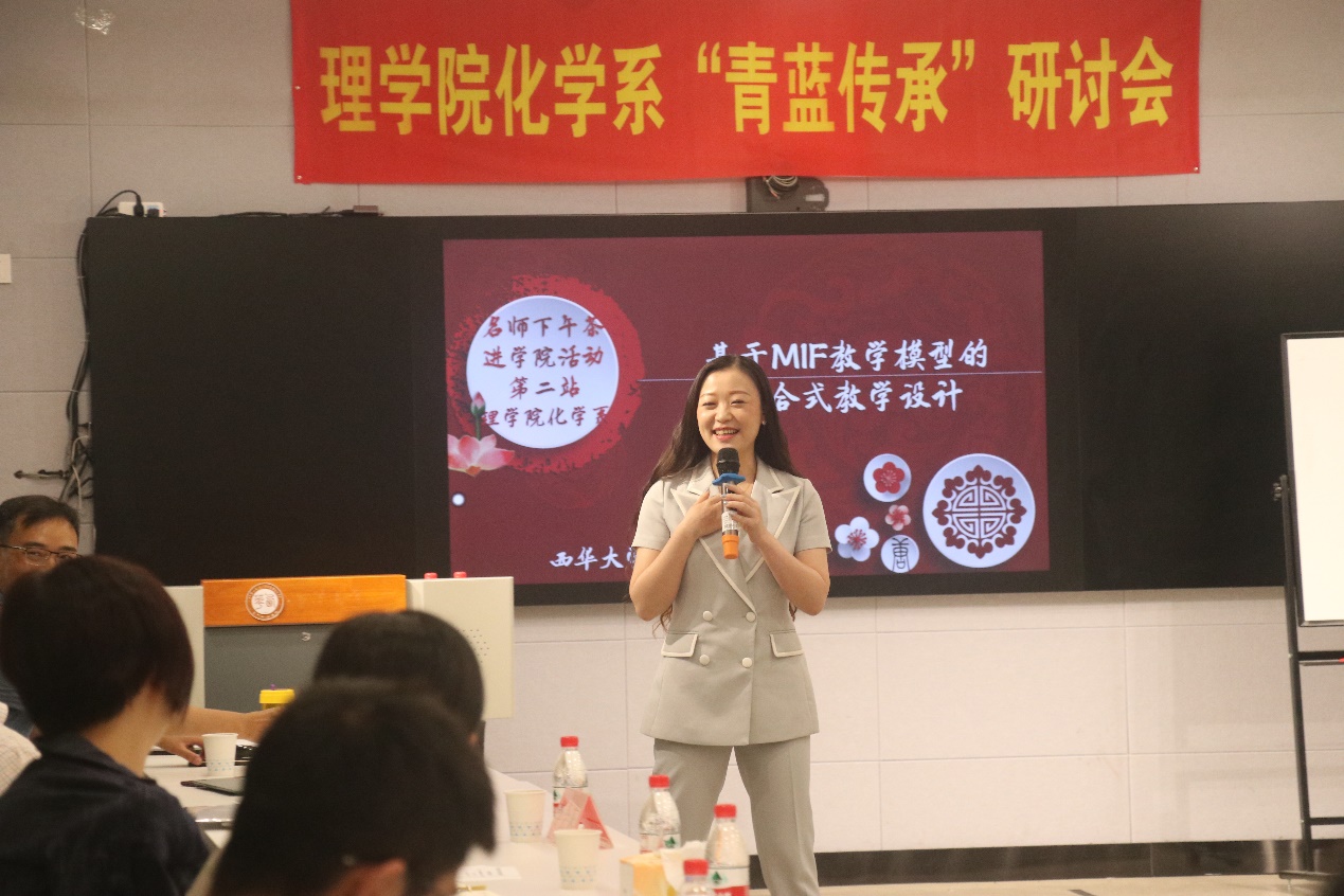 活动上,伟德国际1946副主席蓝进首先指出要充分发挥优秀教师的模范带头作用,将优秀的教学经验和方法带入到每一个学院,充分激发教师们提升基本教学能力、参与教学研究改革的积极性。教务处副处长刘雪梅强调,化学学科作为国家一流专业建设点,专业的发展和学科的建设离不开课程建设。理学院院长王周玉提到理学院近年来新引进了大批优秀的青年教师,此次“名师进学院”活动不仅可以让教师们看到伟德国际1946优秀教师的风采,也能激励他们不断提升自己的教学能力。