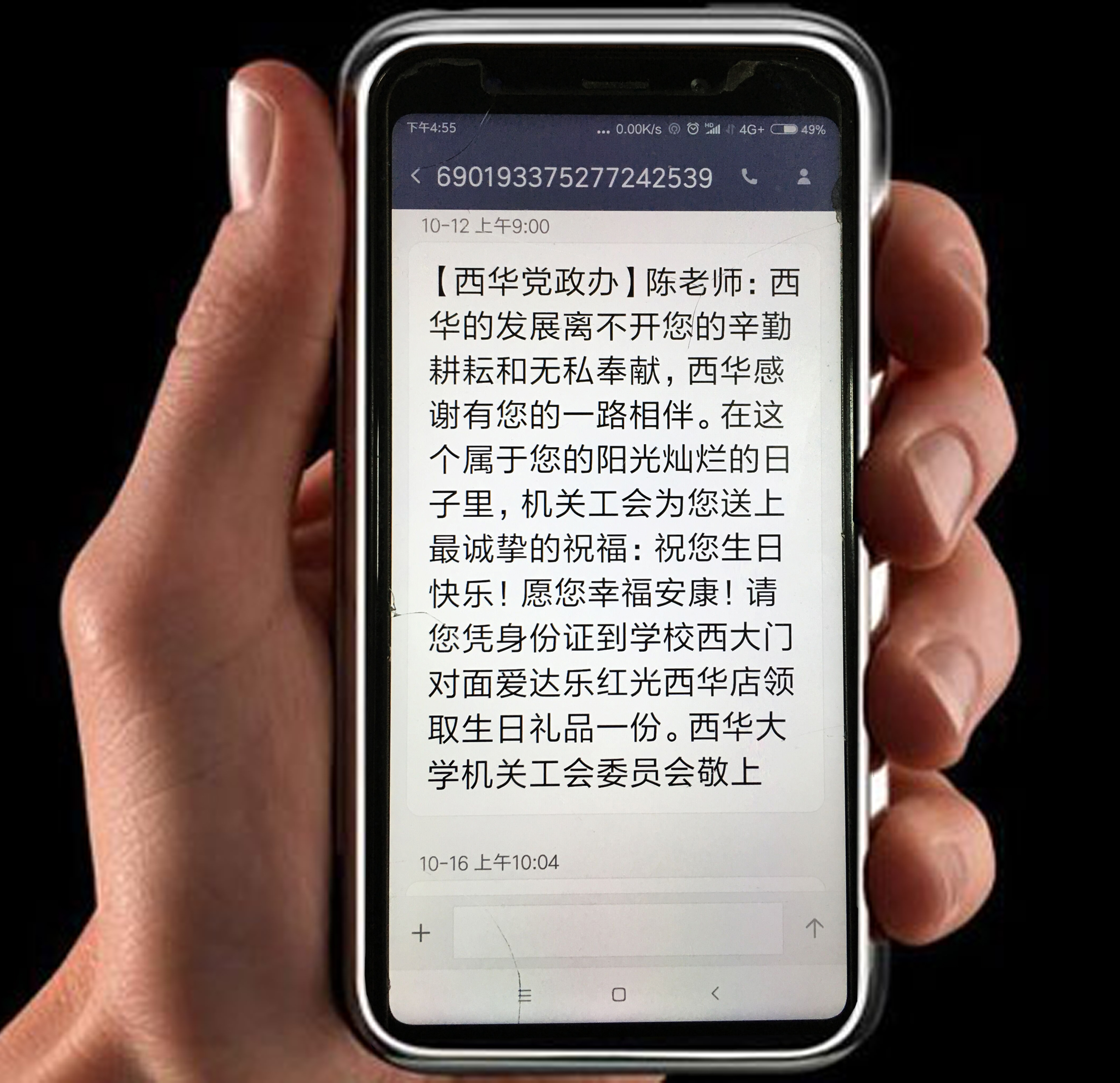 职工生日当天收到的短信问候