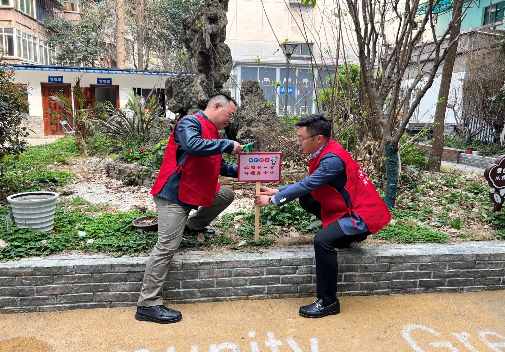 3月11日下午,人南校区直属工会小组全体成员以及南虹社区党委成员来到人民南路三段35号家属院,以饱满地热情投入到院落美化活动中。大家清扫院落,在绿化带中放置环保提示牌,并向院落居民宣讲垃圾分类的相关知识,以实际行动持续巩固老旧院落“四改六治理”的良好成果。