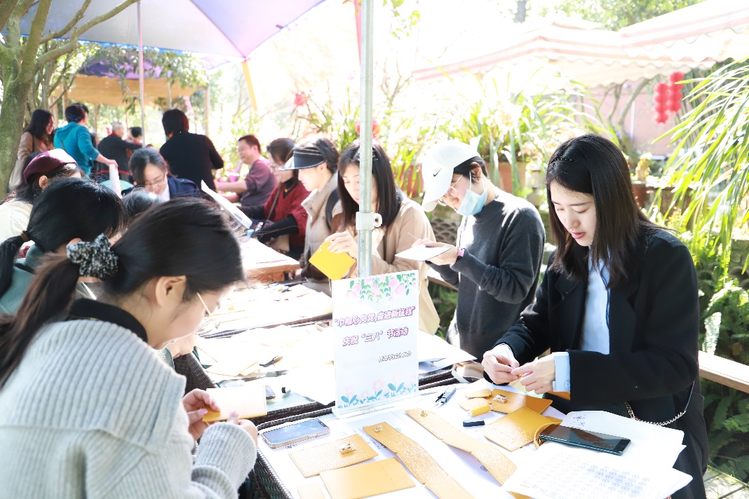 在美丽的春景中,老师们分组开展了自制手工包活动。简单的材料在老师们心灵手巧的技法下组装为精致的包袋,教职工之间的友谊也在交流与合作间得以加深。手工活动之余,老师们也积极向学院领导班子和学院分工会建言献策,表达了汇聚巾帼力量助力学院、学校发展的期盼和信心。随后,老师们一起参观了中国十大最美乡村、四川省实施乡村振兴战略工作示范村——青杠树村,了解了村落改革发展的沿革,直观感受了党和国家乡村振兴的建设成果。