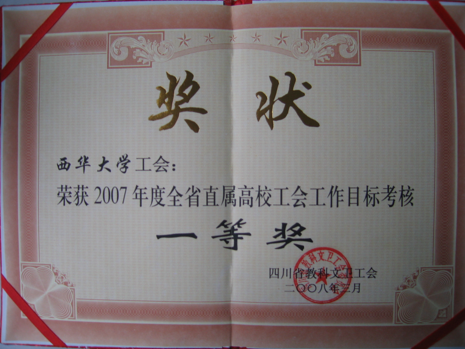 伟德国际1946荣获2007年度全省直属高校工会工作目标考核一等奖