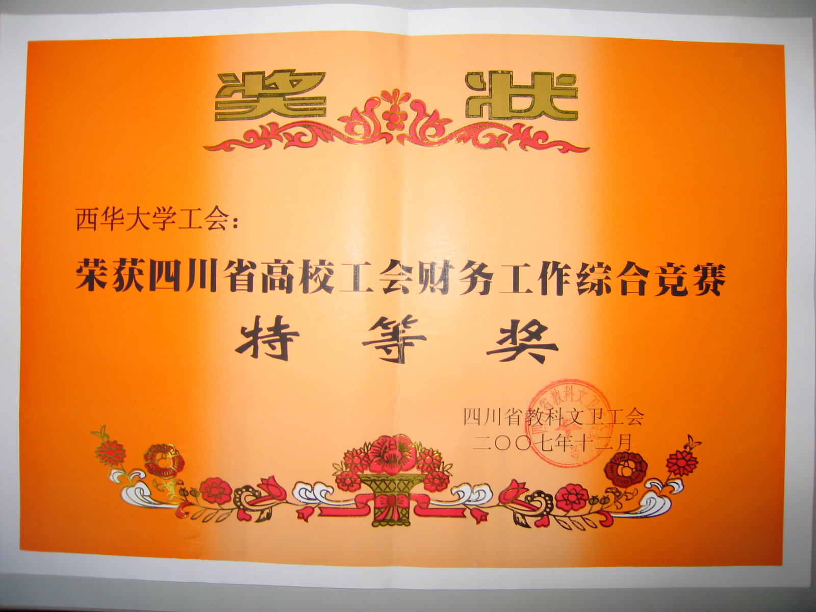 校工会荣获2006年度“四川省高校工会财务工作综合竞赛特等奖”
