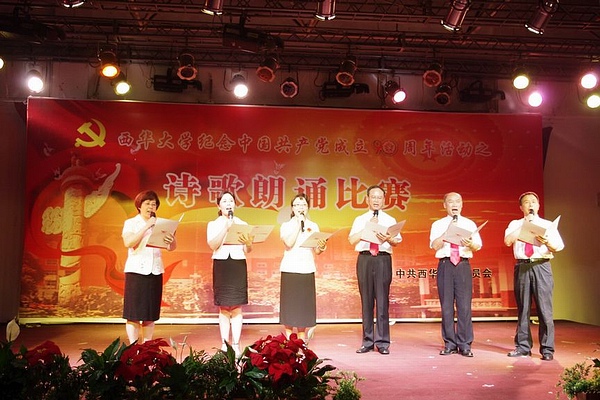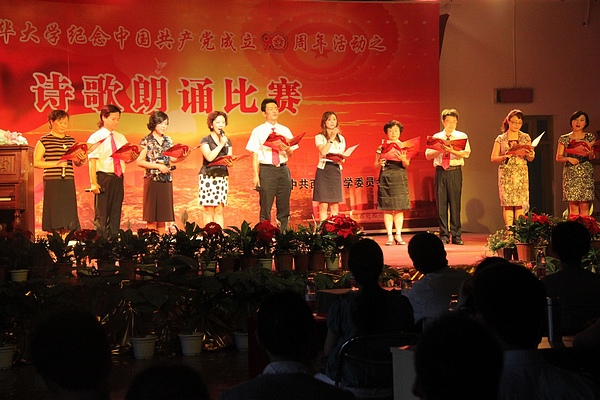 6月24日晚7点,由校党委主办,校团委、校语言文字工作委员会、校工会共同承办的“庆祝中国共产党成立90周年诗歌朗诵比赛”在学生活动中心举行。