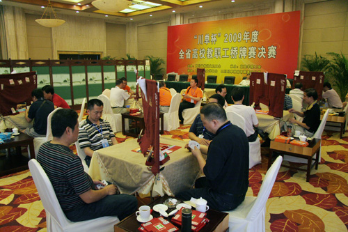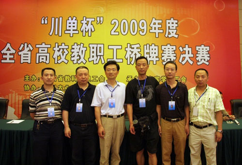 由四川省教科文卫工会主办,宜宾学院工会承办,四川农业大学工会、四川川单种业有限责任公司协办的“川单杯”2009年度全省高校教职工桥牌赛决赛于7月21日至23日在宜宾市举行。伟德官网由学校党委副书记王民朴同志领队,学校工会常务副主席王代言和副主席杨晓龙为工会负责人,李跃平、蒋明礼、凌廷友、尹良四位教师为选手代表学校参加了比赛。