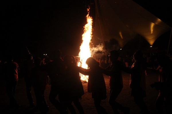 晚上7:00,期待已久的篝火晚会开始。夜里虽是寒风阵阵,但活动现场依旧火热。在篝火旁,各小分队有的以歌唱,有的以舞蹈,有的用话剧,为大家带来阵阵欢笑。晚上9:30,主持人当场宣布三对新人牵手成功,全场响起热烈的掌声祝福。