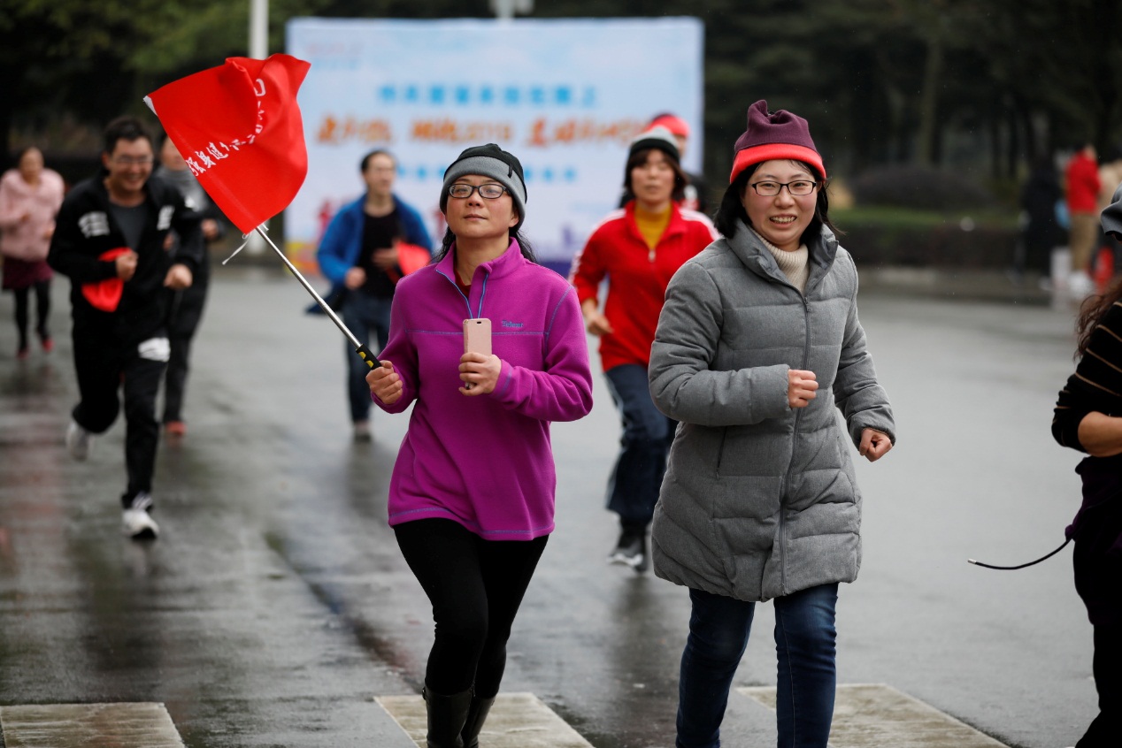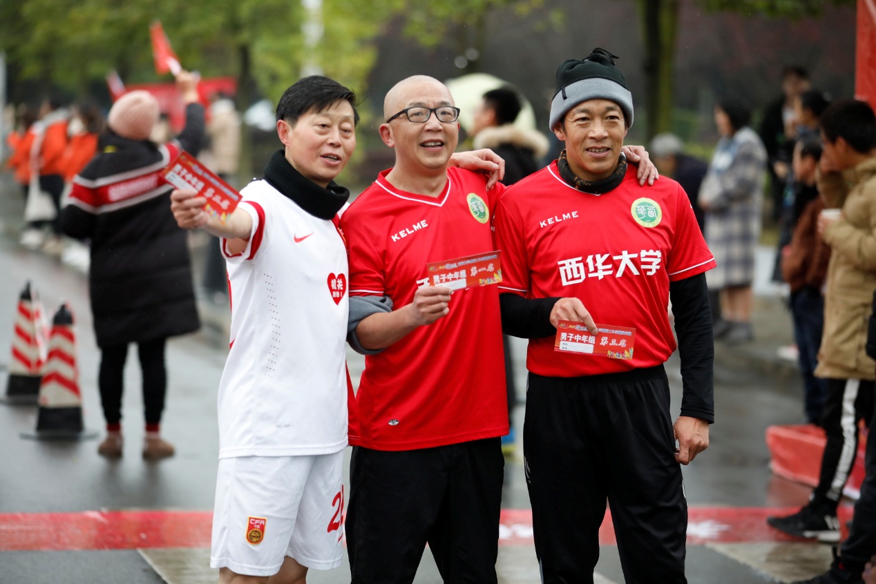 下午2点,运动员们就早早聚集在长跑起跑点周围,不畏严寒,精神饱满地开始了热身运动。2点30分,随着发令员的一声枪响,女子青年组队员们奋力冲出起跑线,拉开了比赛的序幕。比赛虽时值寒冬,天空下着细雨,但挡不住教职工高涨的热情。“跑健康未来,展西华风采”、“燃烧吧我的卡路里 西华全员跑起来”……沿途的标语感染着每一位运动员,长长的跑步队伍在冬日的校园里形成了一道别样的风景。运动员们你追我赶,冬日的校园里因有这群健康、积极、朝气蓬勃的西华人而显得更加美丽。老师们的积极参与也激起了学生们的热情,围观的同学们争相为自己的老师助威加油。