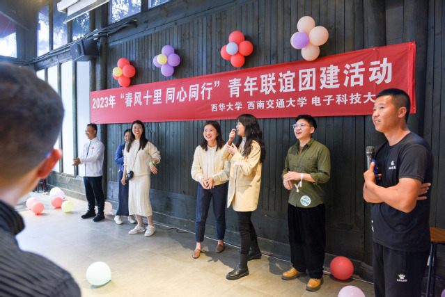 4月13日下午,雨后的春日空气格外清新,郫县梦桐泉乡村酒店里充满欢声笑语,由校工会组织开展的伟德国际19462023年“春风十里 同心同行”青年联谊活动在此举行,来自伟德国际1946、西南交通大学、电子科技大学的近50位青年教职工参加本次活动,校工会副主席蓝进出席活动,活动由外国语学院罗雨虹老师主持。