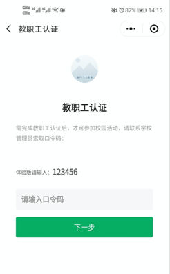 1.新参加活动的教职工进入小程序输入正确口令码后,为不影响后续数据统计,请确保教职工信息填写准确,提交后不能修改。